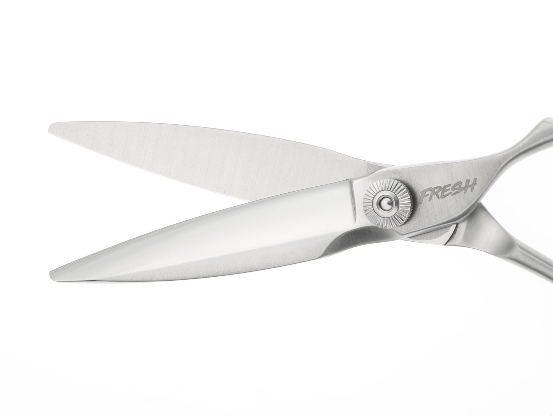 Fresh Shears Umi 6" is the perfect hair stylist shear for dry and slide cutting.  It utilizes a wide leaf-shaped blade which is excellent for finishing work.  Effortless slicing, carving, and point cutting await with the Umi 6".